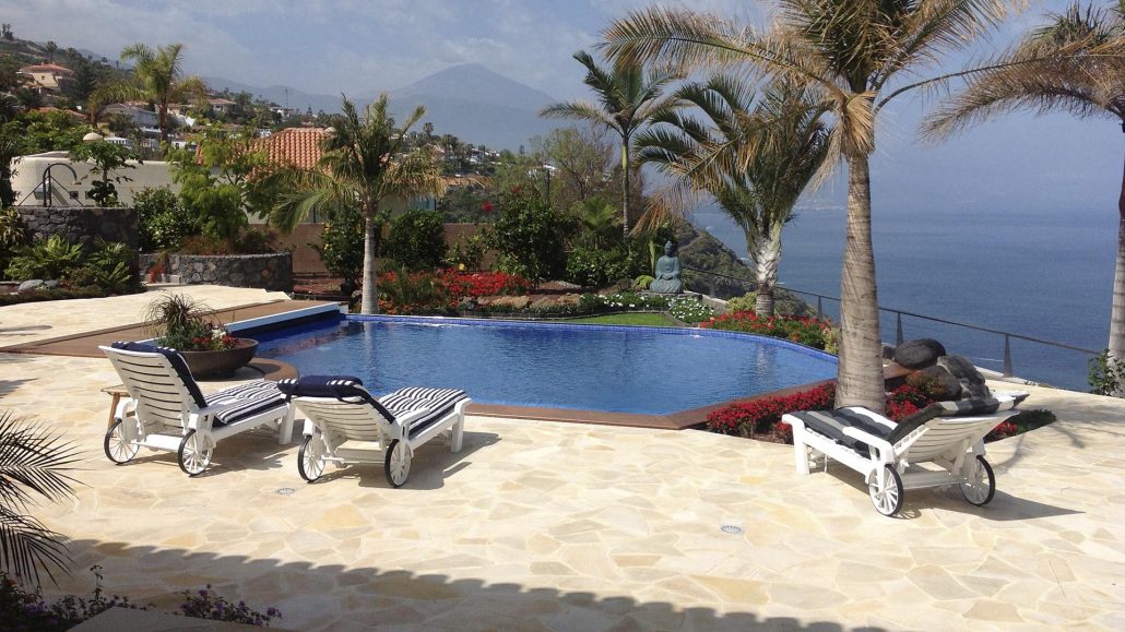 Spektakuläre Villa am Rande einer Klippe mit Blick auf das Meer.