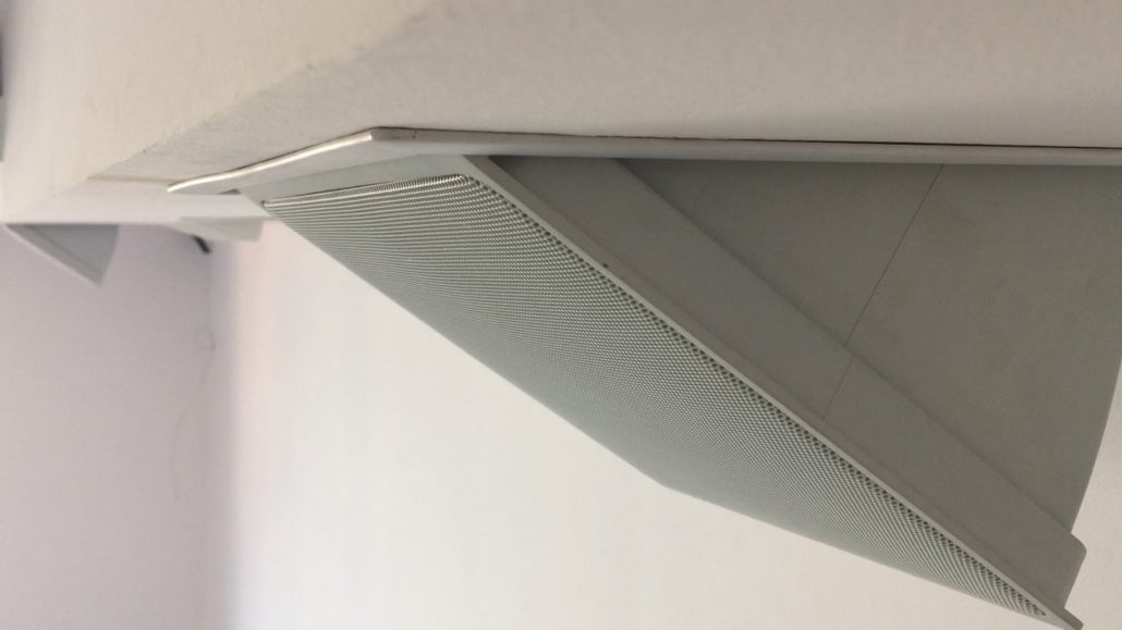 La empresa Indótica, especialista en domótica en la provincia de Tenerife instala altavoces KEF motorizados. Para evitar el impacto visual de los altavoces del sistema 5.1 hemos instalado altavoces de la prestigiosa marca KEF los cuales mientras que no se usan permanecen ocultos. Cuando los altavoces se ponen el linea con el espectador. La calidad de sonido es espectacular y el diseño es impecable, todo ello reforzado por el subwoofer de la misma marca que también permanece oculto.