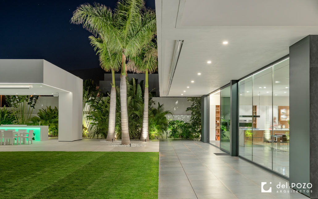 La Villa de Lujo en el Barranco del Inglés, Adeje dispone de control de exteriores mediante detectores de presencia, asimismo se puede establecer un control horario y ejecución de distintas escenas, que concede al usuario definir ajustes de escena que permiten iluminar un área en base a las necesidades de iluminación y actividades que se realizan en ella.